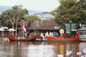 Floating Market Lembang merupakan tempat wisata yang sangat cocok jadi pilihan wisata bersama keluarga. Di dalamnya traveler dapat menikmati berbagai wahana seperti kota mini, penyewaan kostum khas Jepang dan Korea, wahana permainan air, hingga menikmati berbagai kuliner.